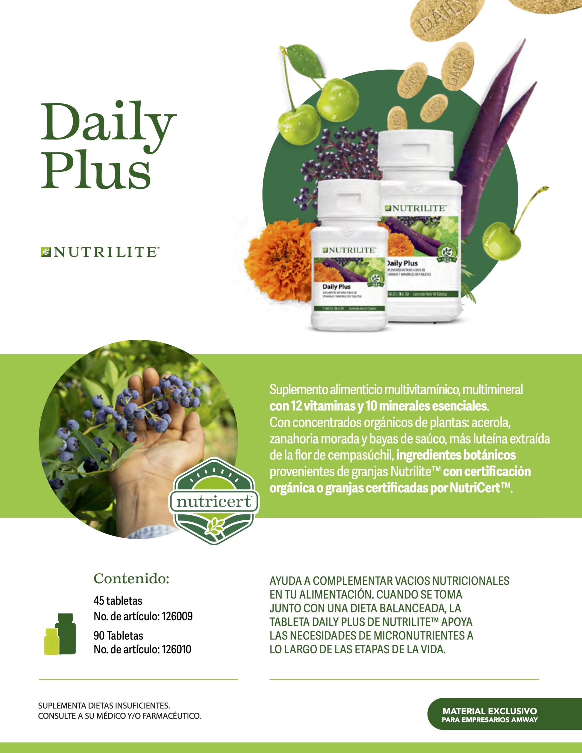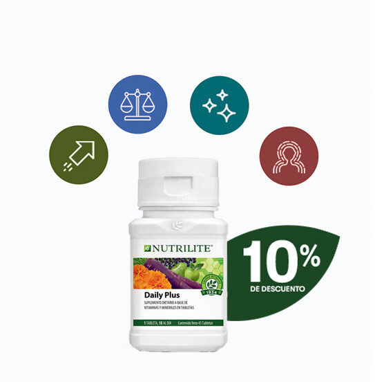 - Nutrilite Daily Plus aporta 12 vitaminas y 10 minerales esenciales.