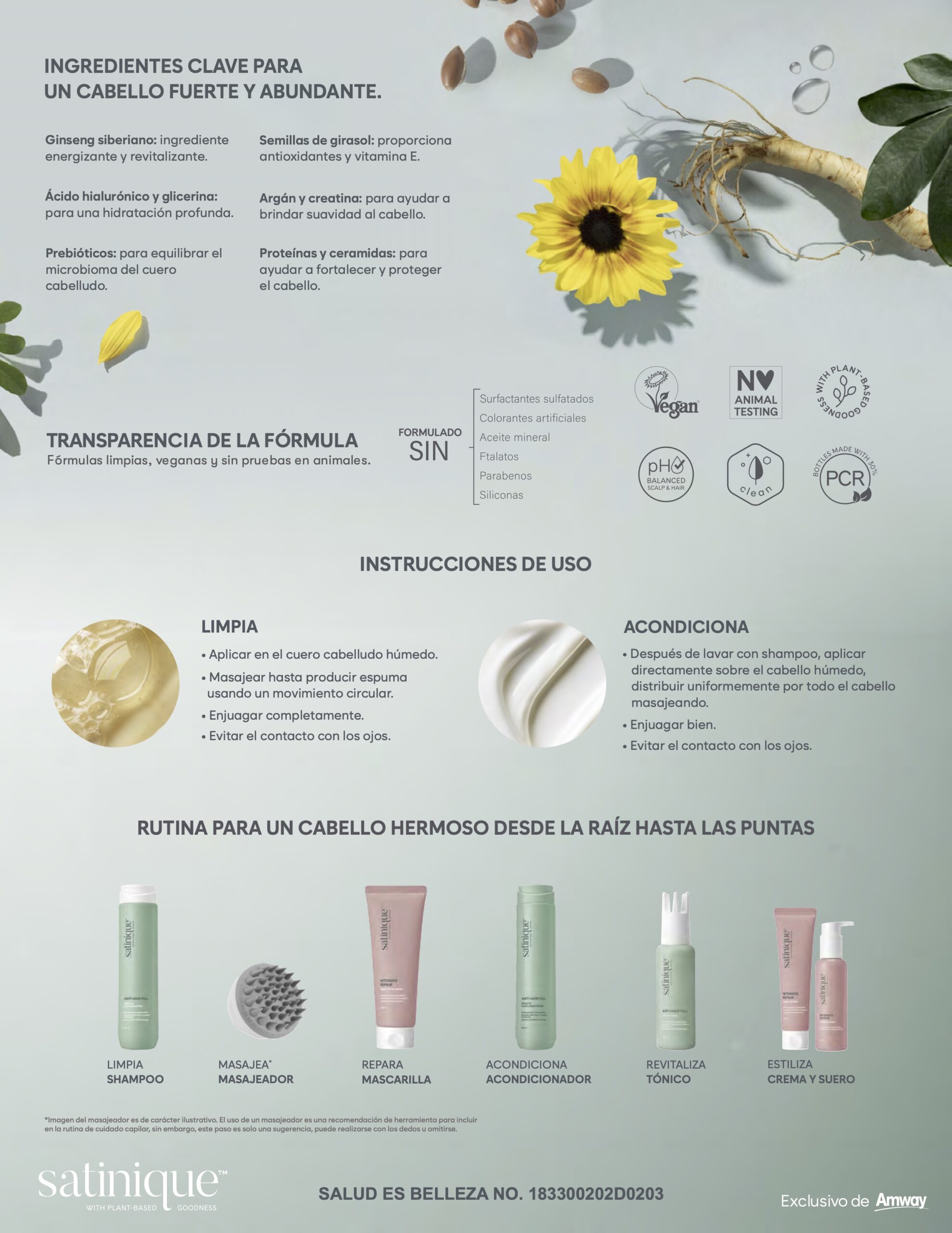 - Con Patente Phytojuve para el cabello: Complejo de proteínas y ceramidas derivadas de plantas para ayudar a fortalecer y proteger el cabello.